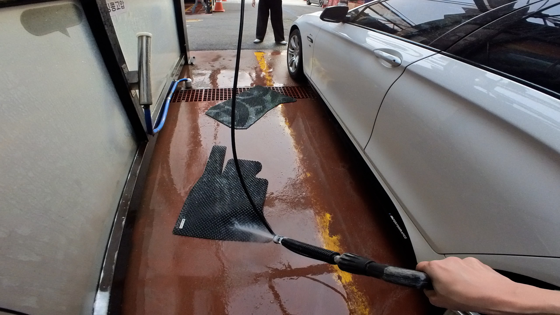 세차 전 매트먼저 물로 슉슉 뿌려주면 청소 끝.